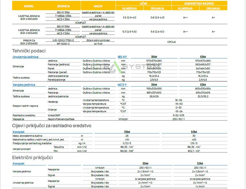 Dolaze u kompletu: kazetna unutarnja jedinica, ic daljinski upravljač, panel i vanjska jedinica.
