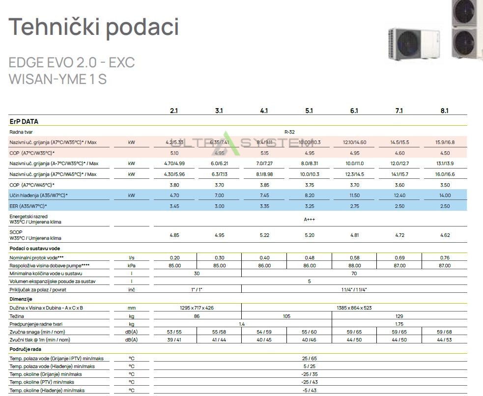 8,20-8,20 kWMonoblok - samo vanjska jedinica za nisku i srednju potrošnju.