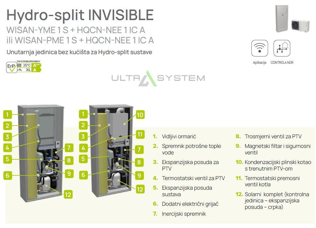 8,76-8,76 kWDizalica topline zrak-voda sa skrivenom unutarnjom jedinicom za grijanje, hlađenje i pripremu potrošnje tople vode.