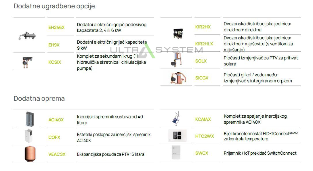 Temperatura polaza vode - grijanje i PTV (°C): od 25 do 65