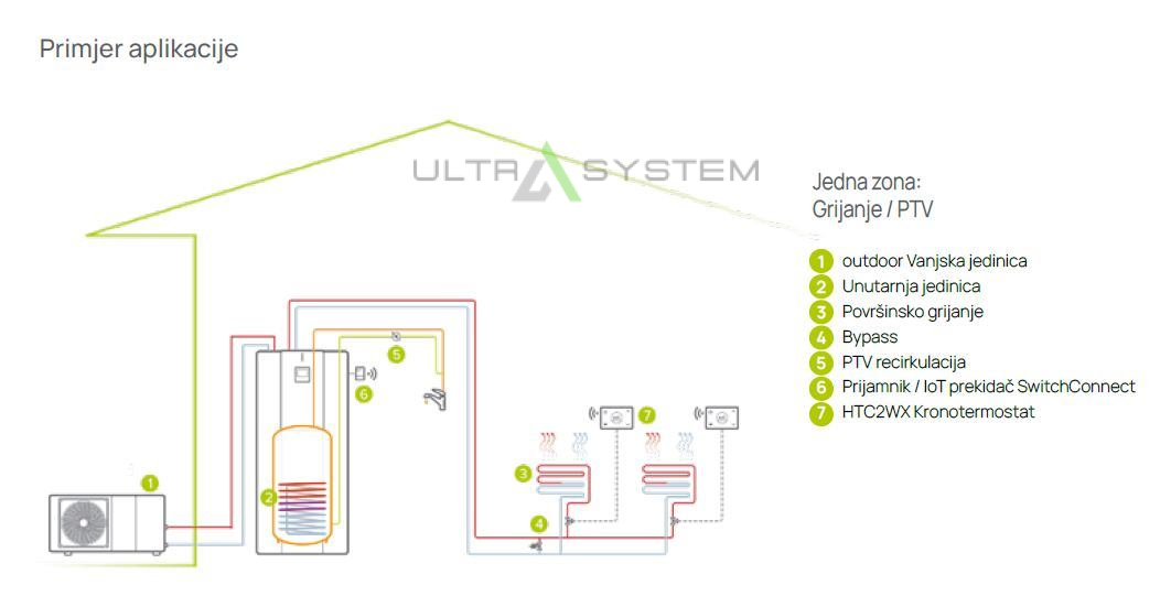 11,50-11,50 kWDizalica topline zrak-voda sa samostojećom unutarnjom jedinicom za grijanje, hlađenje i pripremu potrošnje tople vode.