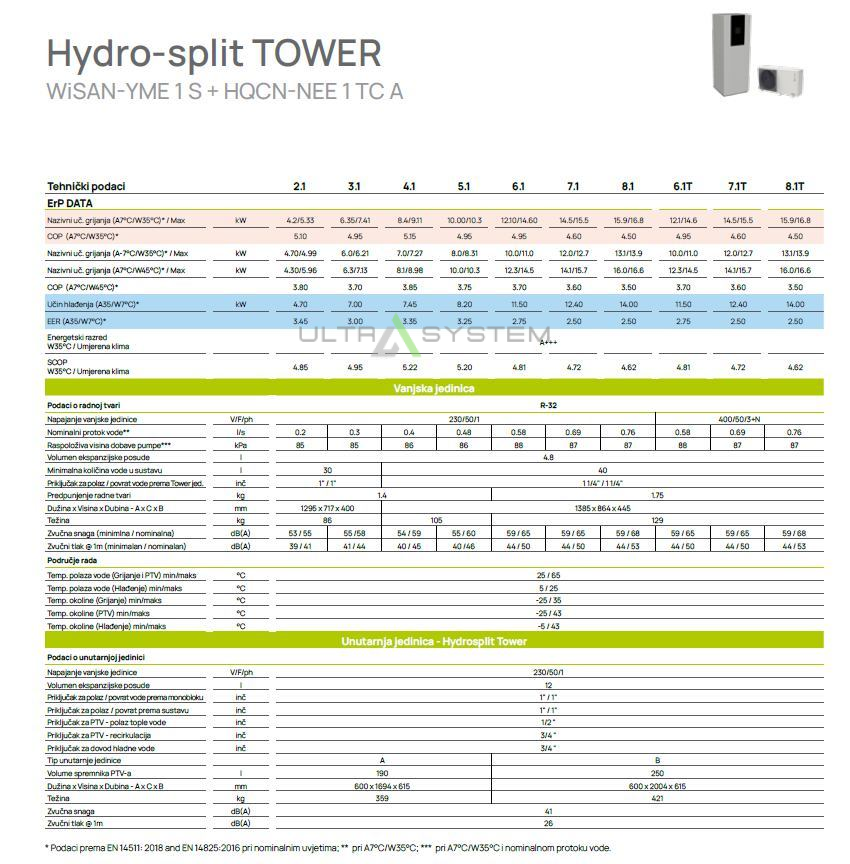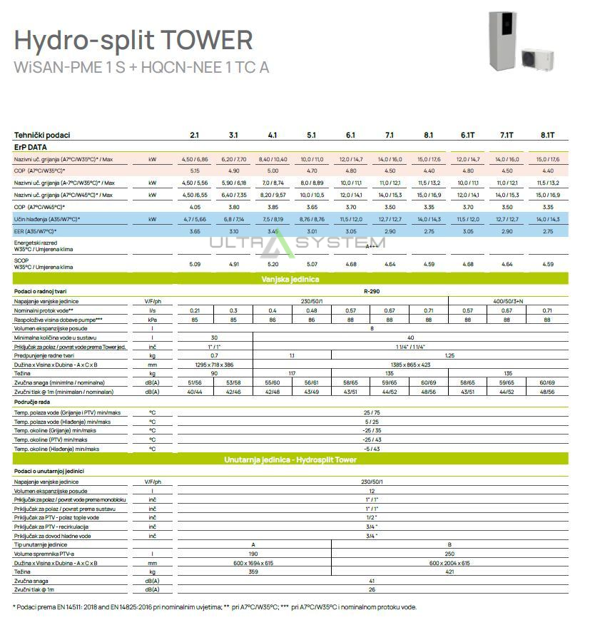 14,00-14,00 kWDizalica topline zrak-voda sa samostojećom unutarnjom jedinicom za grijanje, hlađenje i pripremu potrošnje tople vode.
