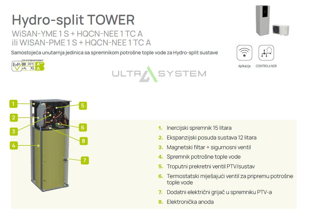7,00-7,00 kWDizalica topline zrak-voda sa samostojećom unutarnjom jedinicom za grijanje, hlađenje i pripremu potrošnje tople vode.