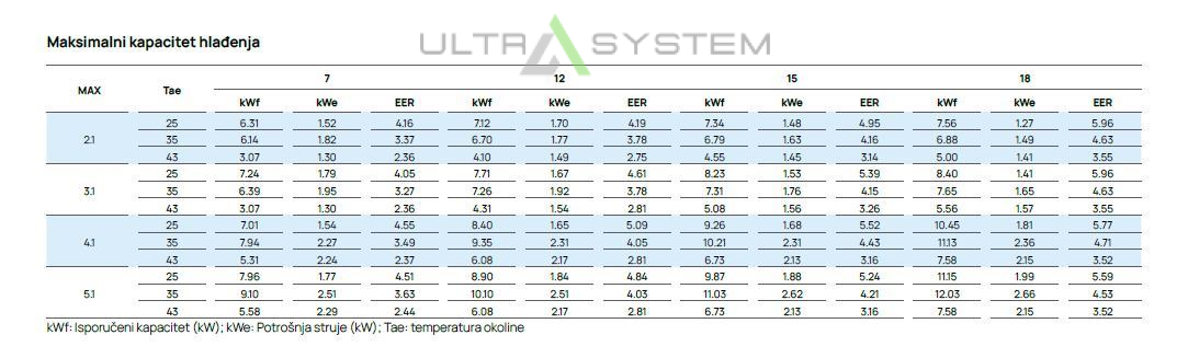Temperatura polaza vode - hlađenje (°C): od 5 do 25