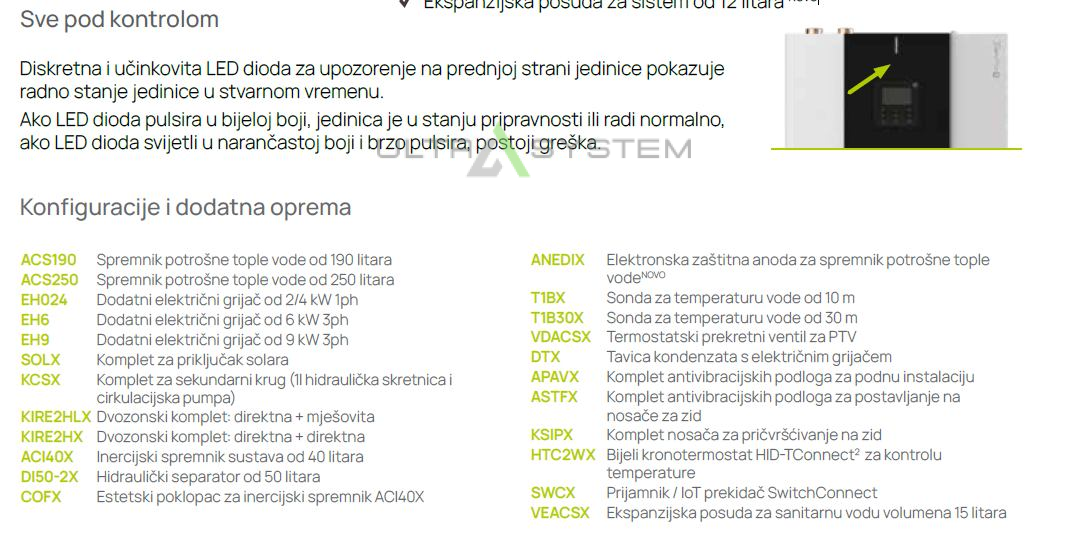Temperatura polaza vode - grijanje i PTV (°C): od 25 do 65