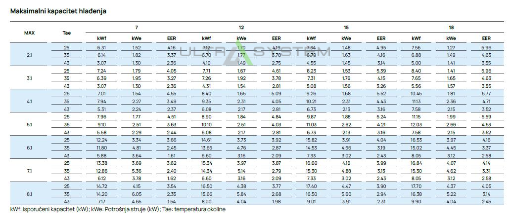 Temperatura polaza vode - hlađenje (°C): od 5 do 25