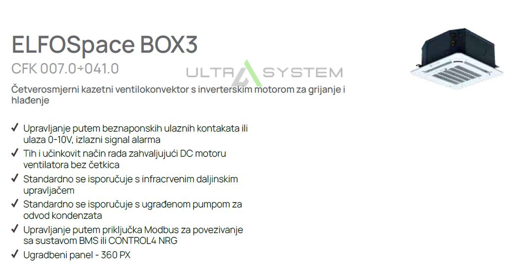 Kazetni DC ventilokonvektor s IC daljinskim upravljačem.