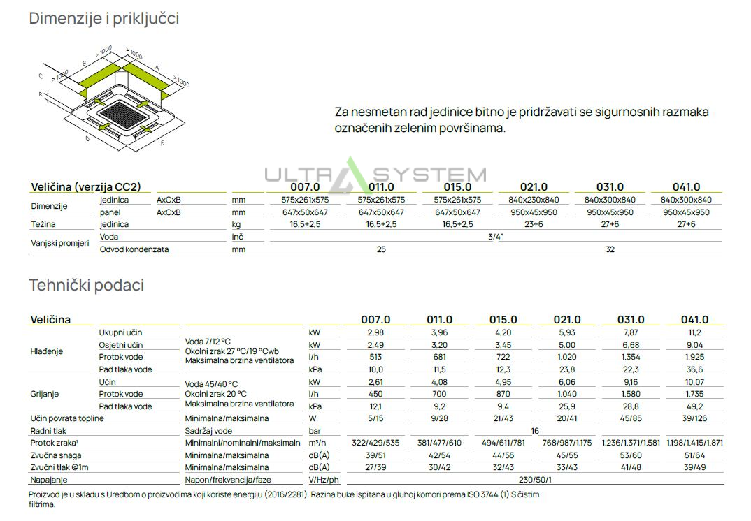 Kazetni DC ventilokonvektor s IC daljinskim upravljačem.