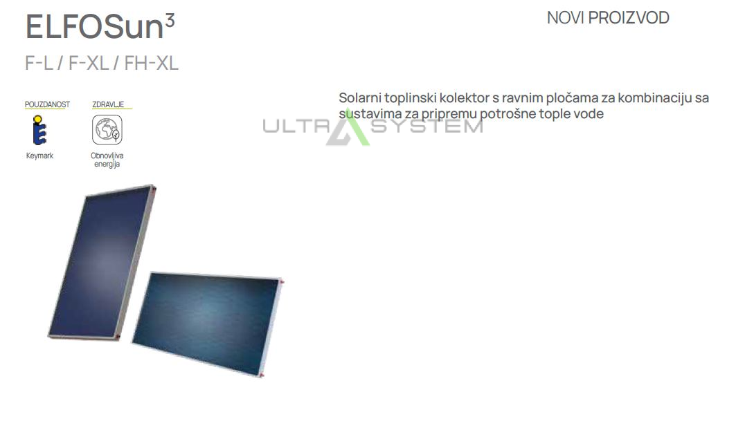 Solarni toplinski kolektor s ravnim pločama za kombinaciju sa sustavima za pripremu potrošne tople vode.